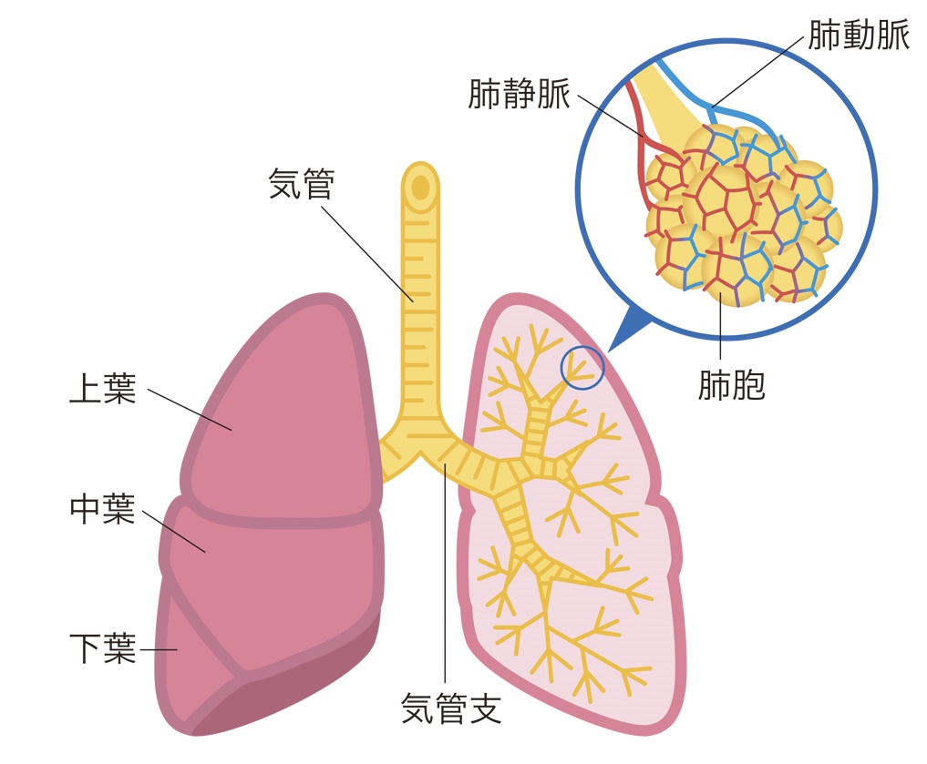 ガス交換する「肺胞」が炎症を起こすのが