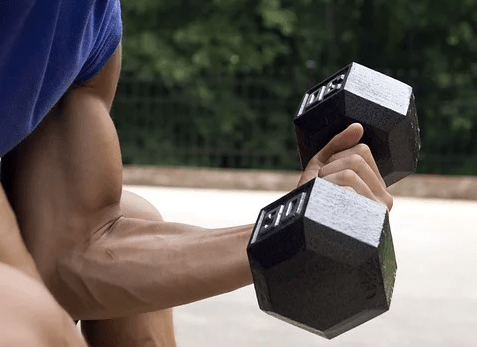 筋トレではダンベルやバーベルを持った「カール」がそのトレーニングになります。