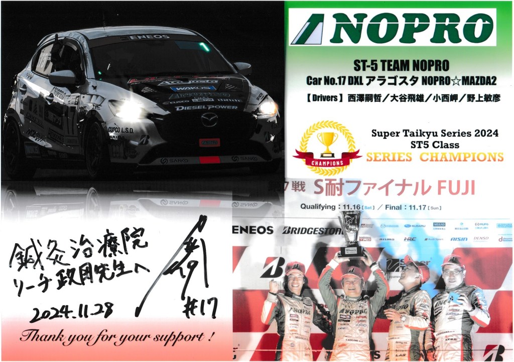 チームNOPRO スーパー耐久2024年ST5クラスシリーズチャンピオンの小西岬選手が報告に来てくれました