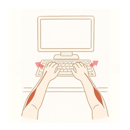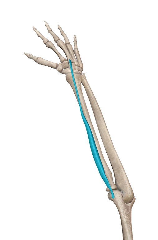 肘から手首をまたぐため、失陥がある場合肘関節と手関節のど痛みを感じます。