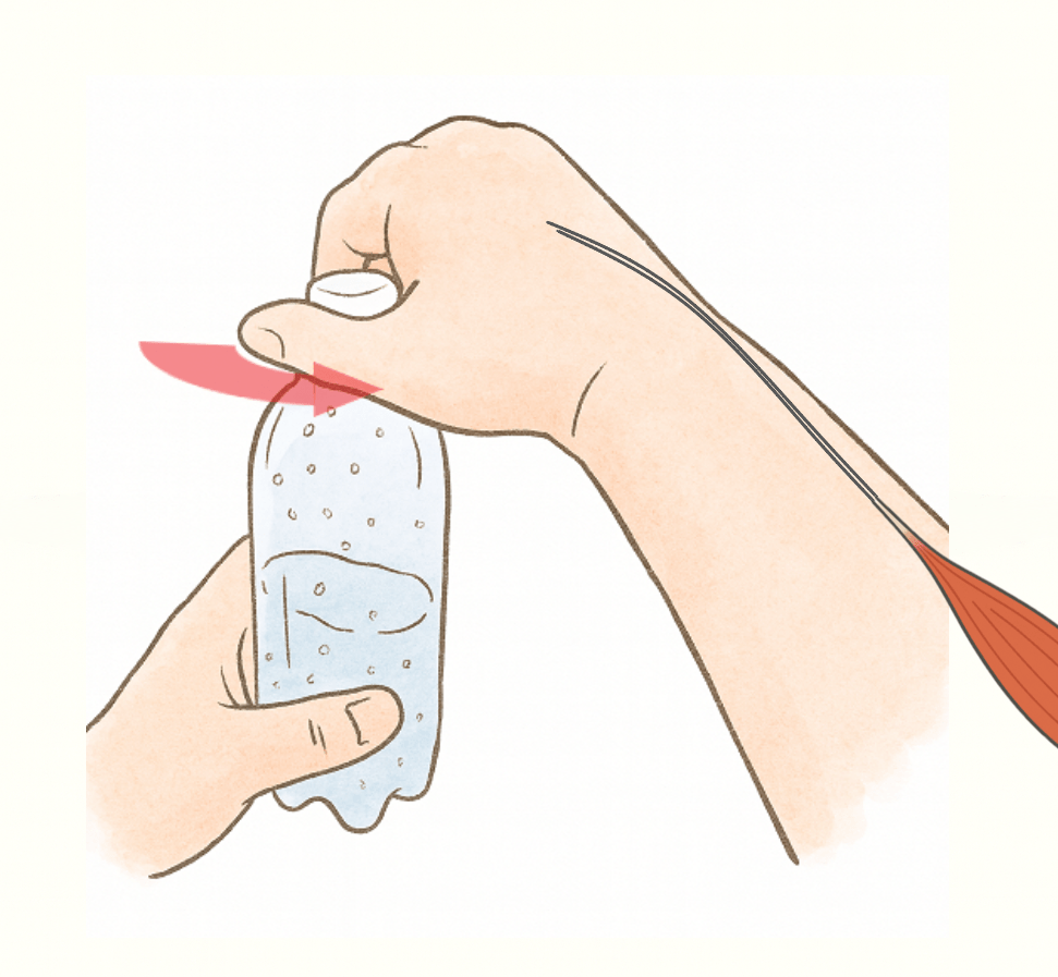橈屈(外転)の動きでは長橈側手根伸筋とともに親指側へ手首を傾ける動作を補助します。