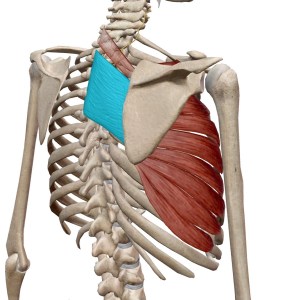 大菱形筋の内転に対して、拮抗する筋肉は前鋸筋です。前鋸筋は肩甲骨を外側に引き、肩甲骨を前に引き出す動作を担当しています。大菱形筋と前鋸筋がバランスを取り合い、肩甲骨の位置を調整します。前鋸筋を介して吸気にも関係してると言えます。