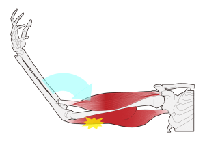 肘の屈曲障害とは疲労で拘縮した上腕三頭筋が上腕二頭筋の肘を曲げる作用をじゃましている状態です。