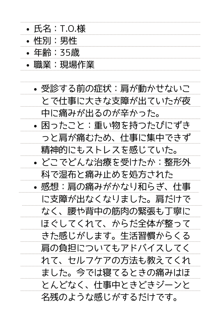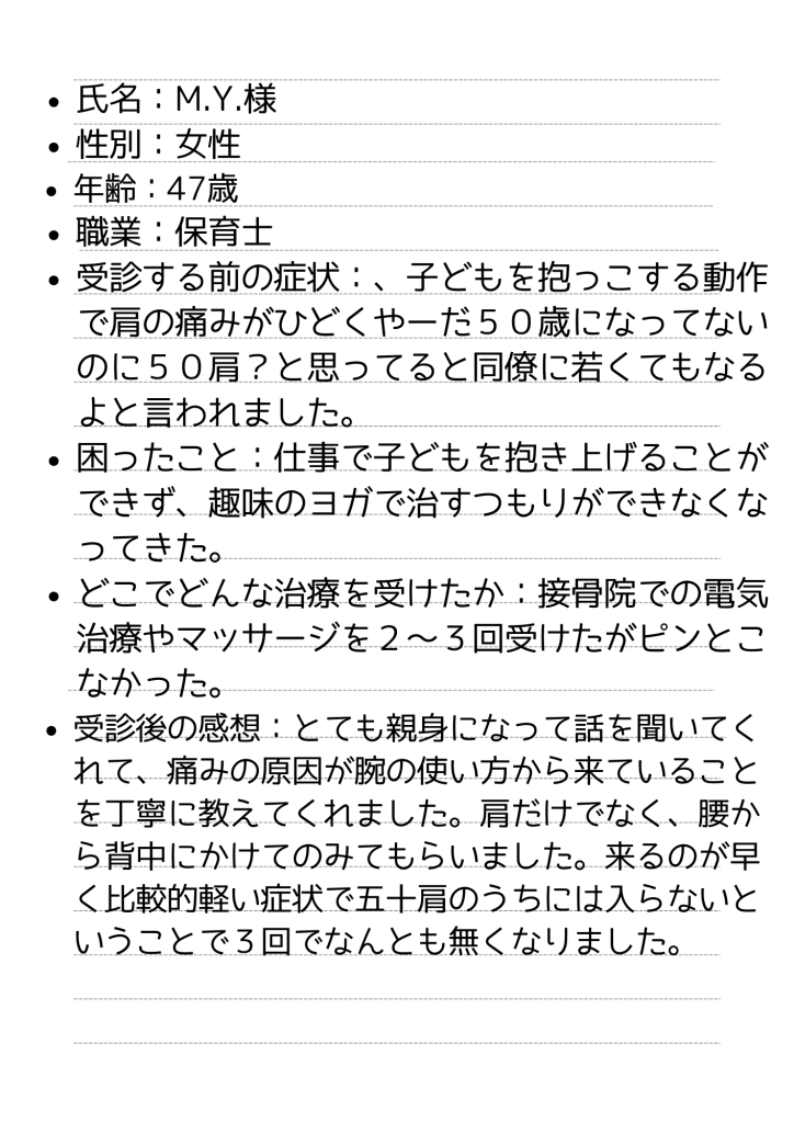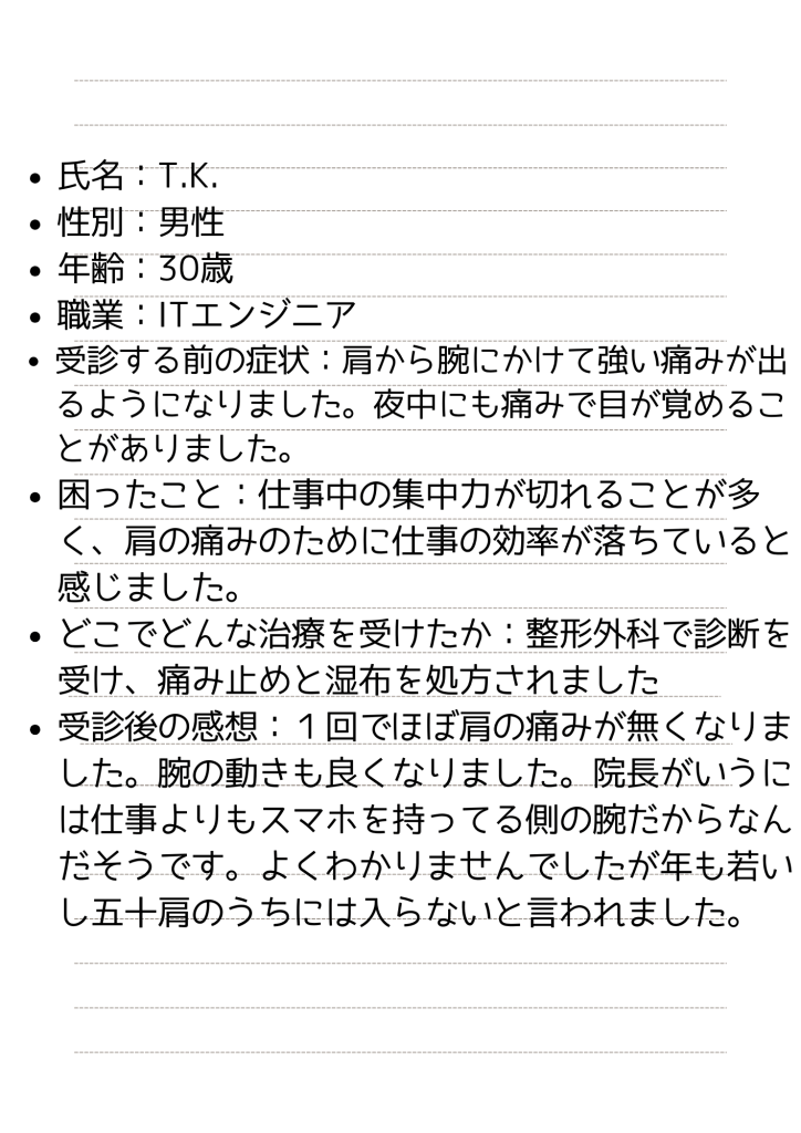五十肩 で当院を受診された方の感想
