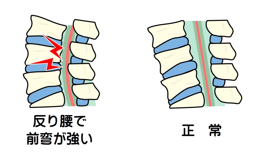加齢とともに腰椎への負担が強まり 脊柱管狭窄症の症状が出やすくなります。同じ度合いなら反り腰の方のほうが症状が出ます。