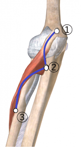 内側上顆炎の痛みはこの屈筋群の炎症から始まります。