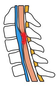 腰部脊柱管狭窄症 ってどんな症状? 脊柱管狭窄症は、脊柱(背骨)の内部にある神経が通る通路「脊柱管」が狭くなり、神経を圧迫することで痛みやしびれが生じる症状です。