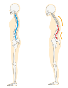姿勢が悪く腰が曲がると脊柱も曲がり 脊柱管が元ある状態よりも狭い部分を作り出してしまいます。
