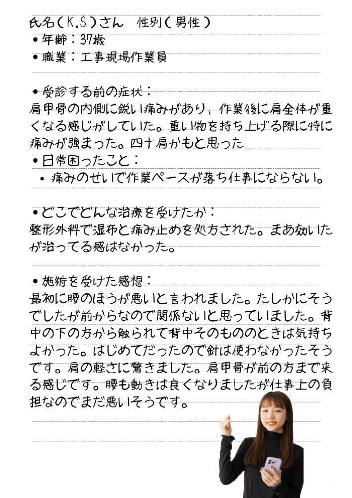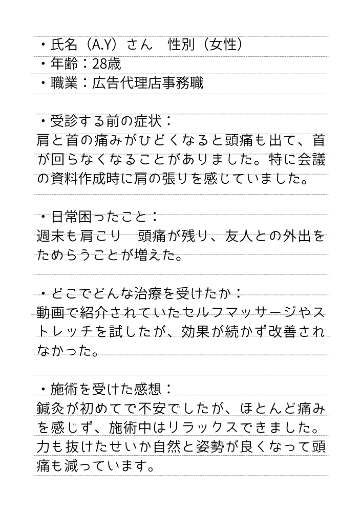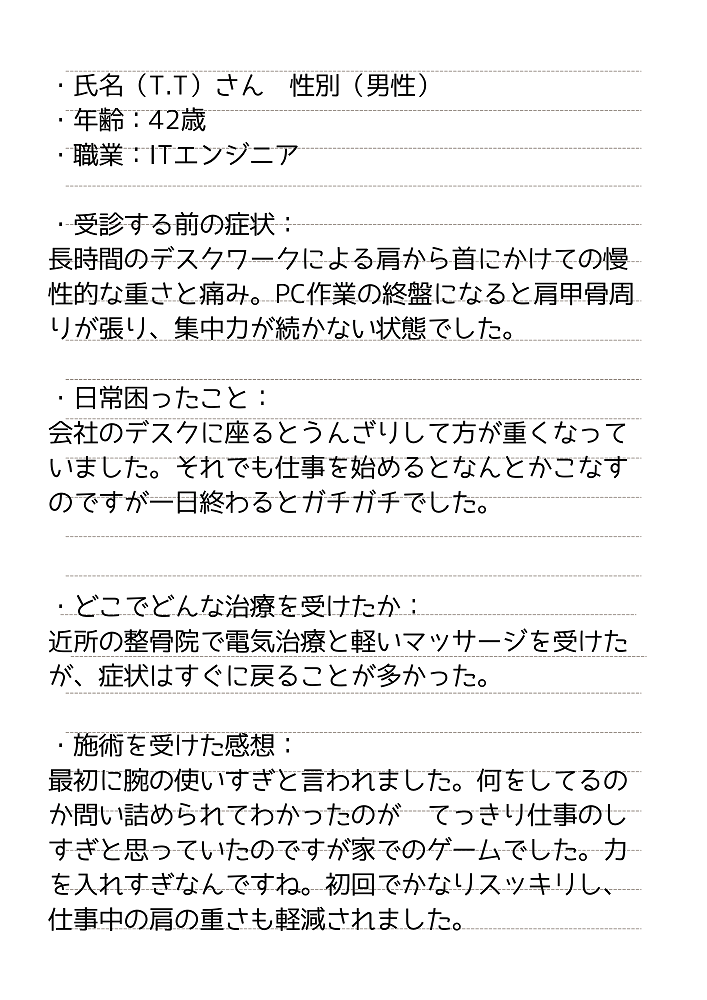 肩こり で当院を受診された方の感想