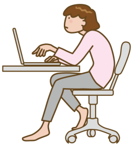 長時間の前かがみ姿勢や、背中を丸めた状態での作業が続くと、背中の筋肉(僧帽筋、広背筋、脊柱起立筋群など)が硬くなります。このような姿勢が習慣化すると、背中の疲労が肩へと波及し、慢性的な肩こりを引き起こす原因となります。
