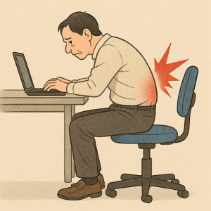長時間の座位や無理な姿勢での作業が続くことで、腰部に過剰な負荷がかかります。