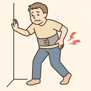 日常生活で動かざるを得ない場合は、コルセット を巻いて腰を支えると動きやすくなります。また、ひとに頼めるならテーピング で筋肉をサポートするのも役立ちます。いずれも可動範囲を狭めて筋肉の負担を軽減するものなので無理は禁物です。