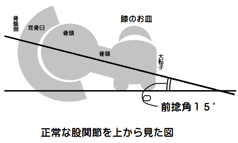 大腿骨の前捻角が深い状態
