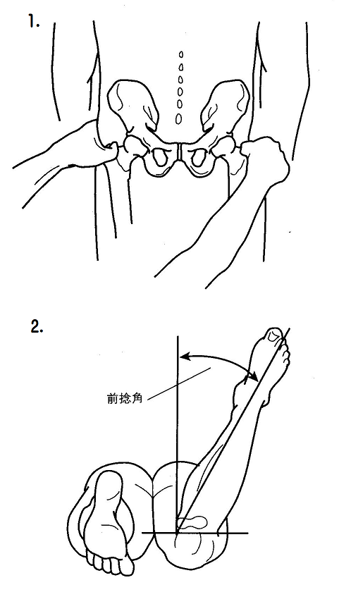 2.膝を曲げ 外側に傾いた下腿の角度が前捻角になります。