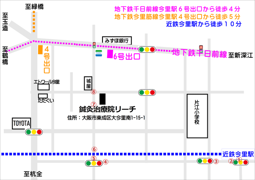 ①近鉄線今里駅の改札は南向き一箇所だけです。