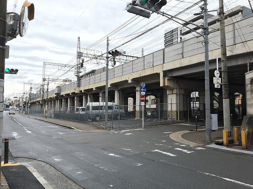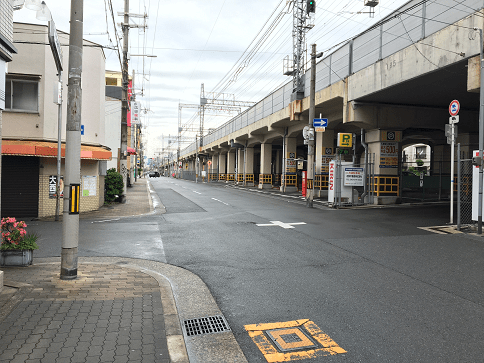 近鉄線の高架沿いに鶴橋の方向へ進みます。